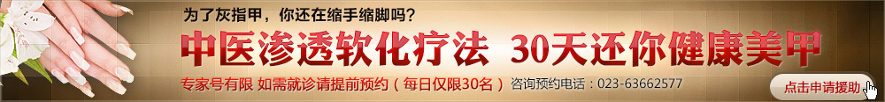 灰指甲是一种十分顽 固而又很常见的皮肤病,虽不会对人的生命造成威胁,但对患者生理功能、日常生活、社会活动等方面造成严重影响。据CNTV报道,国内灰指甲自然人群平均发病率约为23.5%,为了让广大的皮肤患者免受皮肤疾病的困扰,重庆市渝中区第三人民医院专家经过多年钻研,研制出“中医渗透软化疗法”能够彻底治疗灰指甲,效果立竿见影。由于专家号有限,如需就诊,请提前预约(每日仅限30名)。