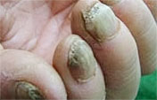 长出新甲后,甲板致密层真菌很快导致 灰指甲复发 |
