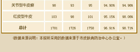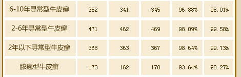经过近万例康复患者临床观察,一个疗程就出现明显的皮损消退现象。该疗法总体治疗银屑病康复率达到98.7%,一般患者7~15天能明显见效。先进设备和前沿技术,外治银屑病症状,内调血液、免疫,修复病变细胞,中培元固本,三管齐下,高效治疗,疗效持久不复发。