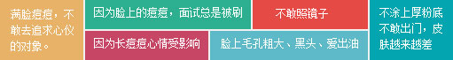 张*:我都30了,患痤疮多年,经常性反复发作,主要集中在T区,嘴周围、颈部,多为小颗粒状粉刺,挤压有白色分泌物,有大量痘印,用过很多祛痘药物、也去做过美容,痘印还是很明显,哎!
