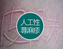 特点:用手搔抓或用钝器划过皮肤后,沿划痕发生条状隆起,伴有瘙痒。