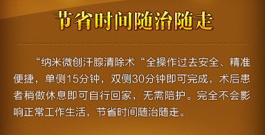 而对于腋臭患者来说,在腋下“巴掌”大的面积内也有成百上千条导致异味的大汗腺,而大汗腺与大汗腺之间并不一定是紧密相连,分布也不一定均匀,其中间隔着皮下正常组织和脂肪等。要想达到完全保留正常组织的前提下,彻底根除腋下异味为目的,选择治疗腋臭技术尤为关键!纳米微创汗腺清除术是目前治疗腋臭最先进的技术,完美解除腋臭复发难题!