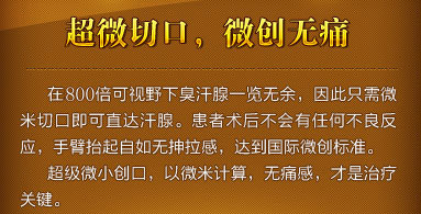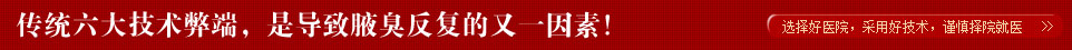 案例二:腋臭手术花费近万元未治好--某网友在网上看到一家小医院打出“800元根治腋臭”的广告后到院就诊,花费近万元还未治好,最后到大型正规医院才得以治好;