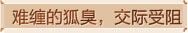 在一起工作、游玩,因为狐臭,同事、朋友总是会不自觉地离自己远点,无意之中就伤害了彼此,弄得自己慢慢疏远同事、朋友,越来越孤僻。