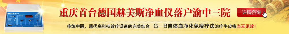 据介绍,重庆市渝中区第三人民医院引进的德国赫美斯净血仪,是目前国际上治疗牛皮癣最有效一种仪器,它可以有效地检测出疾病发病机理,并帮助医生根据患者特点进行针对性治疗。